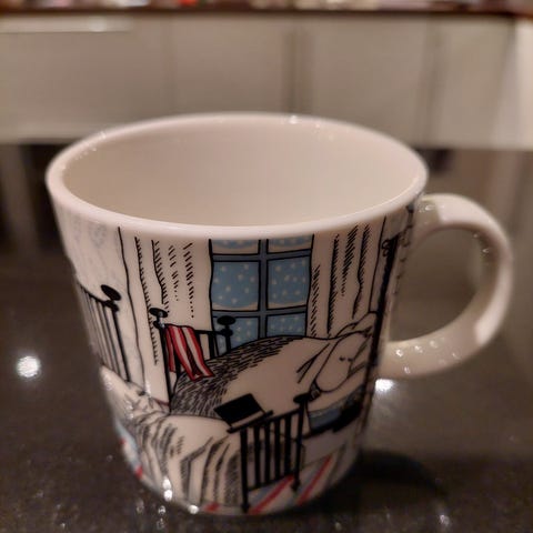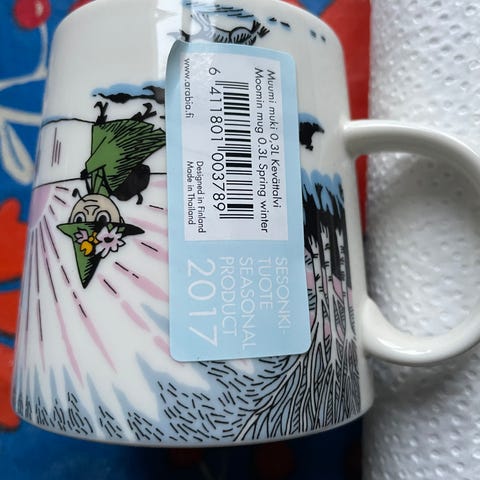 Uusi ja käyttämätön muumimuki tarralla, talvimuki 2015