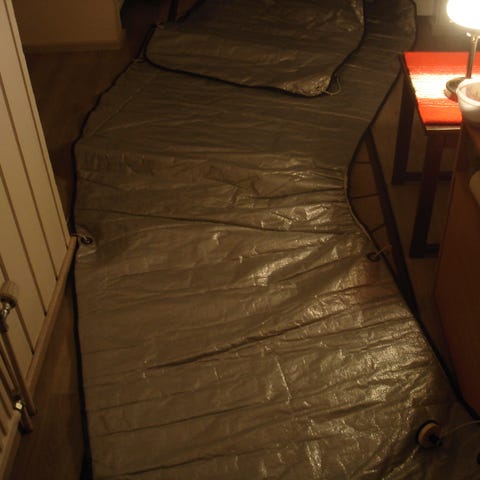 Hymer Van 522 lattian mittojen mukaan 10 mm solumuovista leikatut matot muuttavat lattian kylmillä keleillä mukavan lämpimäksi. Säästöä tulee myös lämmityskustannuksissa.