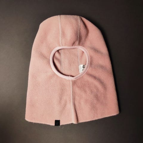 Pienille kasvoille sopiva kypärämyssy pehmeää fleeceä. Ehkä kerran käytetty ja pesty, joten kuin uusi.