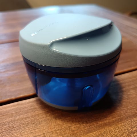 Annetaan Tupperwaren kokoon menevä säilytysastia. Kannen halkaisija 17 cm, astian korkeus avattuna 7 cm.