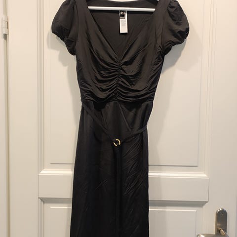 Hyväkuntoinen musta mekko kaikkiin tilaisuuksiin! Ihana vinoon leikattu helma, edessä laskokset ja hihassa napit. Väri täysin musta, osassa kuvista valaistus hämää. Pinta on kuvioinnin ansiosta ihanan eläväinen! Koko S/36, olen itse nykyään M-kokoa ja mekko menee vielä päälle, mutta on hieman tiukka ja siksi myyn pois. Kulkeutuu Helsinkiin omien menojen mukaan tai nouto Järvenpäästä. Postitus onnistuu, mutta kulut lisätään hintaan.