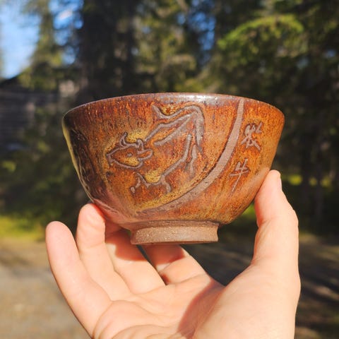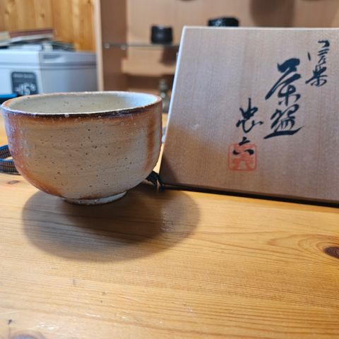Aito Japanilainen Karatsu - teekulho. Taiteilija Okura Sadatoshi.