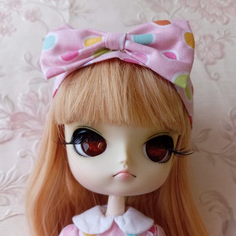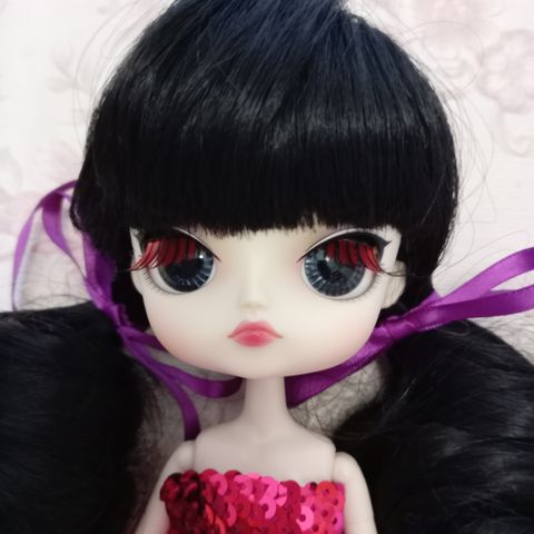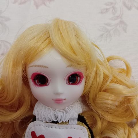 Suloinen pikku dal alkuperäisellä peruukillaan ja asullaan. Toisessa käsivarressa hieman kellastumaa, muuten erittäin siistikuntoinen.