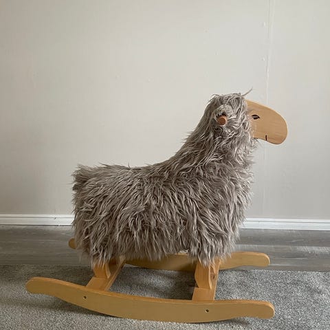 Hyväkuntoinen keinulammas. Päällisen voi irroittaa ja pestä. Taloudessa lemmikkikani