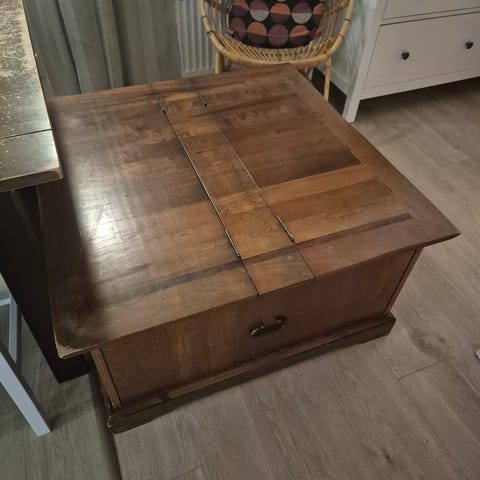 Massiivinen arkkupöytä. Itse tehty. Takorautaset .metalliosat.