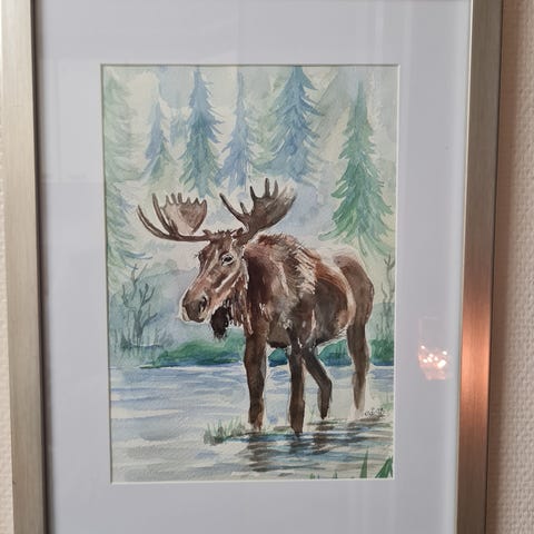 Akvarellimaalaus lyhytkarvaisesta saksanseisojasta (German Shorthaired Pointer) omaa tuotantoa. Koko kehyksineen n. 43 cm x 33 cm.