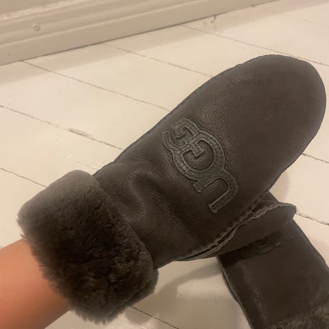 Aivan tummansiniset,vähän käytetyt, UGG-merkkiset mokkanahkaiset hanskat,lämpövuori,koko M.