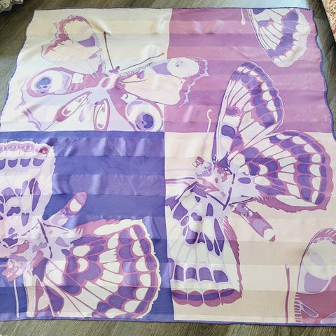 Huivissa näkyvät tahrat, jotka kuvasta näkyy.