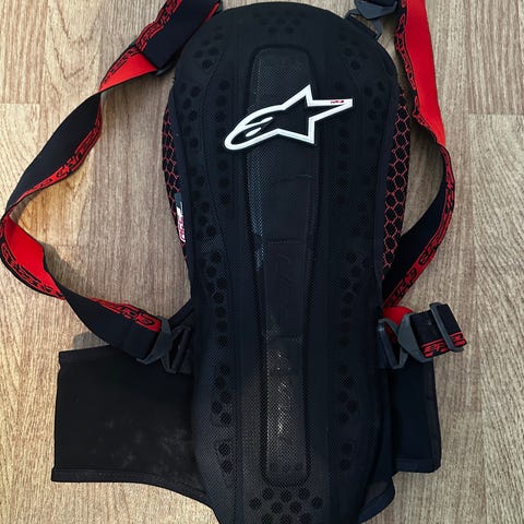 Alpinestars selkäsuoja, valmistettu kestävästä materiaalista, musta väri. Suunniteltu suojaamaan selän aluetta moottoripyöräilyssä tai muussa urheilussa.