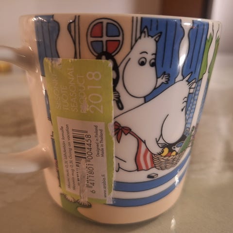 Muumimuki Ystävyys ilmestyi kesäkuussa 2018 osana tunnelmallista Ystävyys-sarjaa, johon kuuluu mukin lisäksi tarjoilukulho, kannellinen purkki, tarjoilulautanen ja kaadin. Vaikka kyseessä on hieman arvokkaampi erikoismuki, on se edelleen edullinen ja erinomainen valinta arkikäyttöön. Rikkaan ja värikkään kuvituksen ansiosta pienet tehdasvirheet, kuten mustat pisteet, jäävät helposti piiloon, joten suurin osa näistä mukeista täyttää helposti Finmugin ”superhyvä”-kategorian kriteerit. Mukit on suunniteltu Suomessa ja valmistettu Thaimaassa. Mukin pohjasta löytyy uudempi ”By Arabia” -leima.