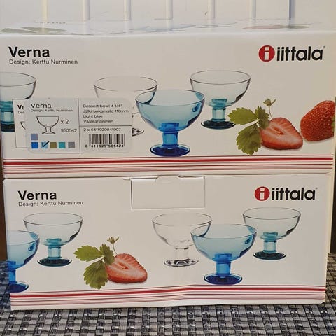 Iittala Verna jälkiruokamaljat 4kpl sininen