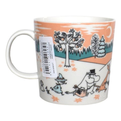 Vuonna 2019 Japaniin avattiin ensimmäinen muumeihin keskittyvä teemapuisto, Moominvalley Park, jonka kunniaksi Arabia julkaisi tämän ainutlaatuisen mukin. Mukin etupuolella nähdään suuri joukko Muumilaakson tuttuja hahmoja vauhdikkaasti yhdessä juoksemassa. Kuvan hahmot ovat peräisin Tove Janssonin vuonna 1956 piirtämästä mainoksesta Föreningsbankenille, kun taas mukin tunnelmallinen taustakuvitus on poimittu Tove Janssonin sarjakuvasta Yksinäinen saari (1955).