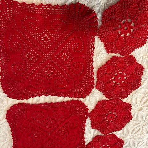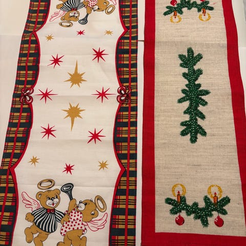 Tosi upea neliskanttinen joululiina. Kimallukset ommeltu kimaltelevilla langoilla. Myös reikäommelta. Punaiset reunat kovitettu. Koko 86 x86.