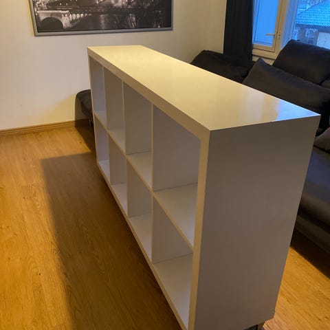 IKEAn valkoinen pystykaappi. Sisällä 4 hyllytasoa ja alhaalla kaksi vetolaatikkoa. Kunto ok käytetty.