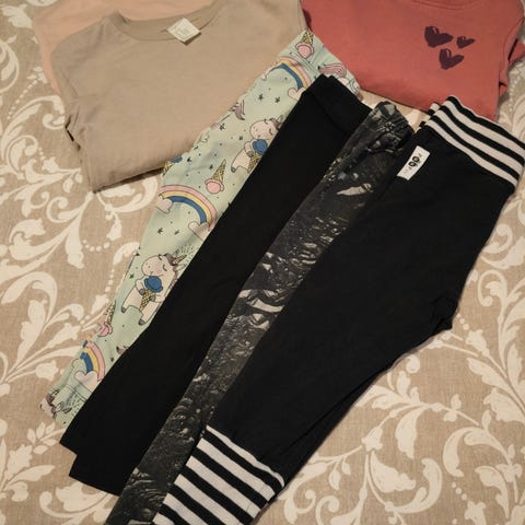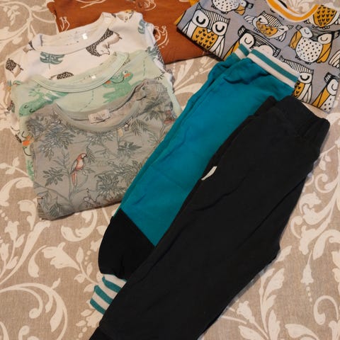 Siistit käytetyt. Paketissa collegepaita, kolmet housut, viisi bodya ja jalkaterällinen yöpuku. Osa vaatteista diy, mutta käytetty koossa 86/92. Ei lemmikkejä taloudessa. Mmm.