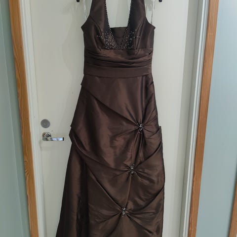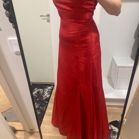 Käyttämätön, pussissa ollut juhlamekko. Vaalean punainen. Isorintaiselle, topattu rintaosa. Vetoketju takana. Rintojen alta n.93 cm. Lapussa koko 46 mutta minusta 42-44.