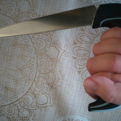 Kaksi isoa veistä: keittiöveitsi ja leipäveitsi. Siisti kunto. Vaatii teroituksen.