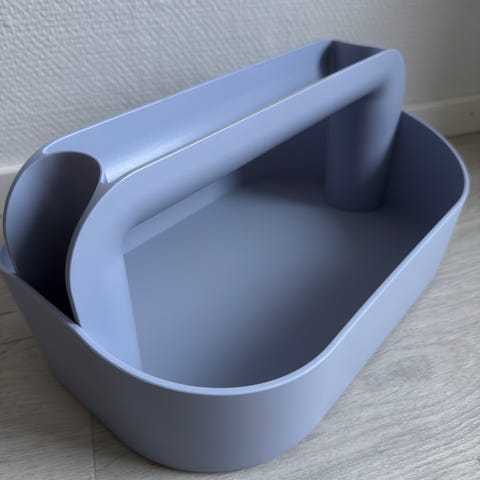 Uusi IKEA X Hay yhteistyöstä syntynyt sininen säilytysrasia.