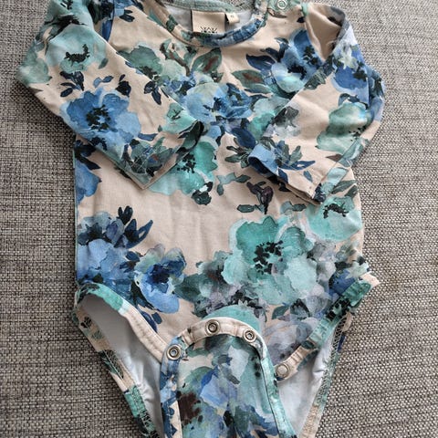 Aivan ihana Kaikon kukkabody koossa 62. Pohjaväri mintunvihreä. Oikein hyvä kunto.