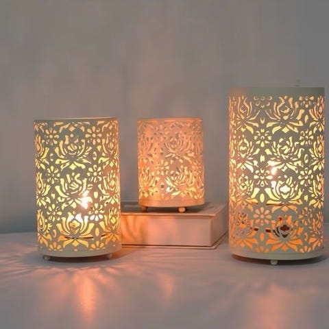 Tuikkulyhdyt polttomaalattua terästä. Halkaisija 8,5 cm, korkeus 8 cm.