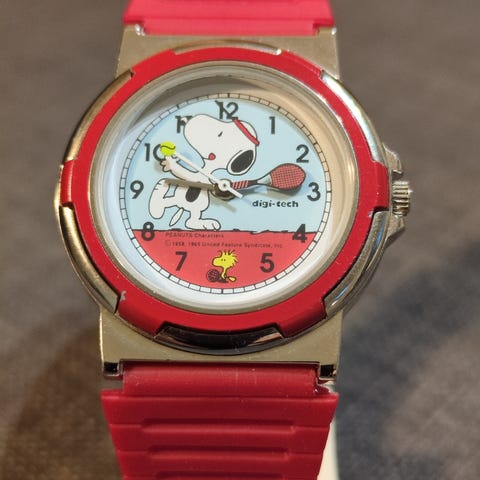 Vintage digi-tech Snoopy-rannekello 1990-luvulta. Kello on ollut käyttämättömänä varastossa noin 30 vuotta.