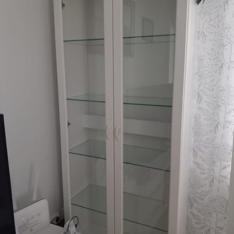 Lasivitriinin koko 111x39x82. Lasitaso 129x63.