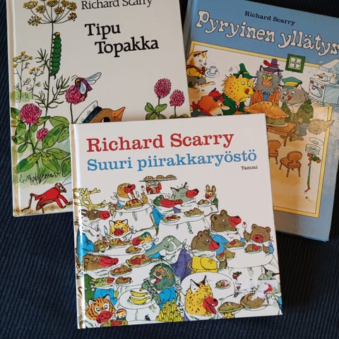 Saturalli hurmaa nostalgisella otteellaan, tarjoten Richard Scarryn rakastetuimmat sadut ja tuttuja hahmoja vuosikymmenten takaa. Moni tarina on myös tuttu Tammen kultaisista kirjoista, tuoden ilon jälleennäkemisen kaikille Scarryn ystäville.