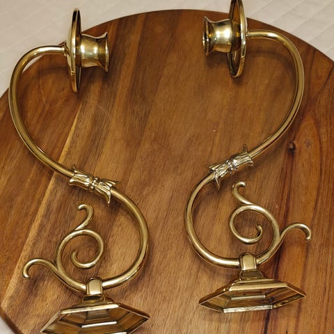 Messinkiset wanhat romanttiset kynttilänjalat , korkeus 26cm.