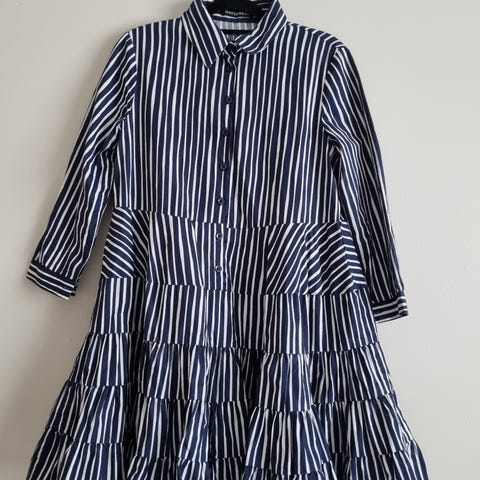 Marimekon niin kaunis ja ylellinen samu-jussi kosken suunnittelema silkkivillamekko. 70% silkki, 25% puuvilla, 5% kashmir. Niin pehmeä, ylellinen ja lämmin mekko kauniilla laine kuosilla. Pitkät hihat, kaulukset ja napit edessä. Koko M. Kai-kai 56cm, olka-helma 91cm, joustaa. Ylin nappi puuttuu eikä varanappia ole, muuten erinomainen kunto.