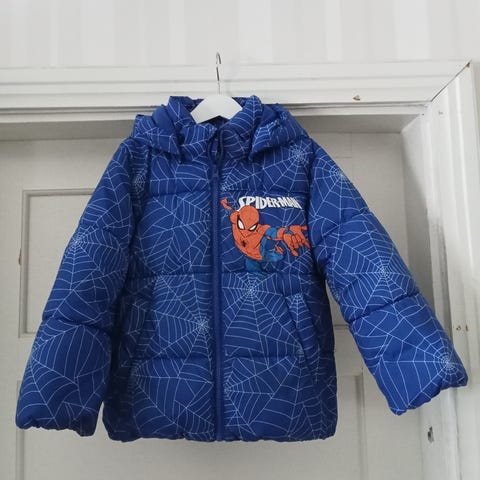 Uusi Spiderman tummansinen toppatakki. Hihan sivuilla Spiderman merkki näkyy heisastimena. Kaksi tasku edessä tarrakiinnitys.