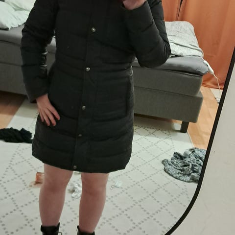 Myydään Tommy jeans pidempi musta paksu talvitakki.