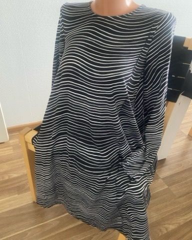 Marimekon kaunis Viuhtoa mekko koossa XS. Mekossa on erikoisemmat hihat, joten kannattaa myös googlettaa miltä vaate näyttää päällä. Mekossa irtonainen kangasvyö.