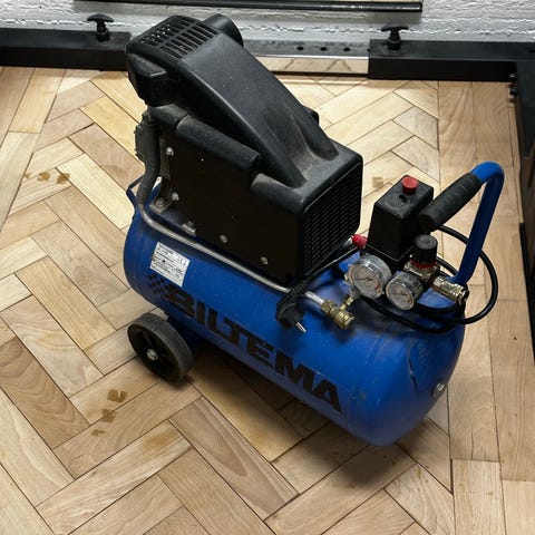 Siistissä kunnossa oleva Kramfors LBDB kompressori. Toimii 230V jännitteellä. Maksimipaine 115 psi ja maksimikierrosluku 2850 rpm. Mukaan saa myös RC-merkkisen pulttipyssyn.