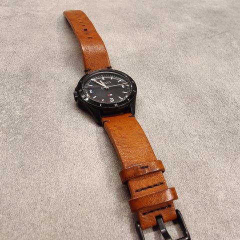 Tommy Hilfiger miesten rannekello mustalla nahkarannekkeella