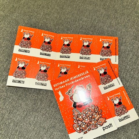 20x 2,75e/kpl arvoisia ikimerkkejä jouluisella teemalla.
