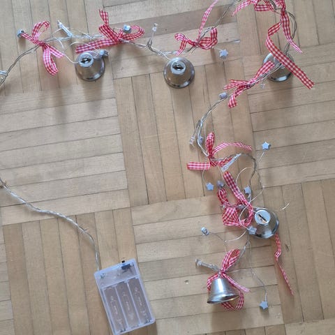 Joulukoriste valoketju ei löytänyt enää paikkaa kodistani. Valon lähteenä punaiset korkokengät kahdeksan kpl, koko 3×6,5sm. Toimii sähkövirralla, on pitkä virtajohto.