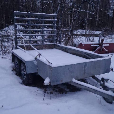 Myydään omavalmisteinen peräkärry ja siinä IBC-kontti. Kuljetettu hevosille laitumelle vettä.