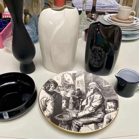 Arabia: Lumina maljakot 15,- ja 10,-GOG pikkumaljakko, alareunasta puuttuu lastu, katso kuva 10,-