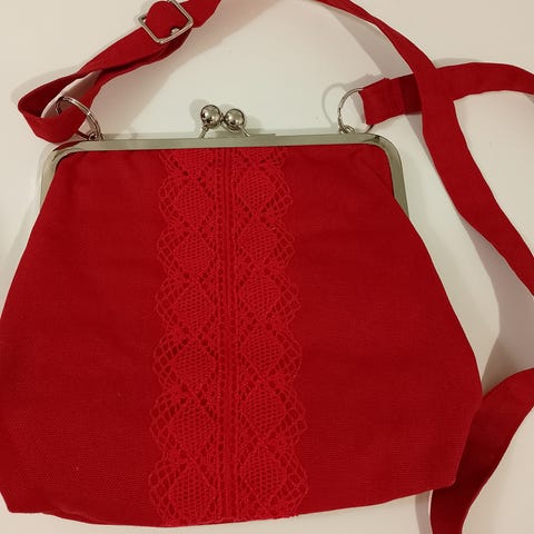 Myydään pussukkalaukku joka tehty sisustuskankaasta (hieman kimalteleva) sekä erillinen vuori ja välissä silitetty vanu, säädettävä puuvillahihna maksimipituus max. 173 cm. Sangan leveys 21 cm.