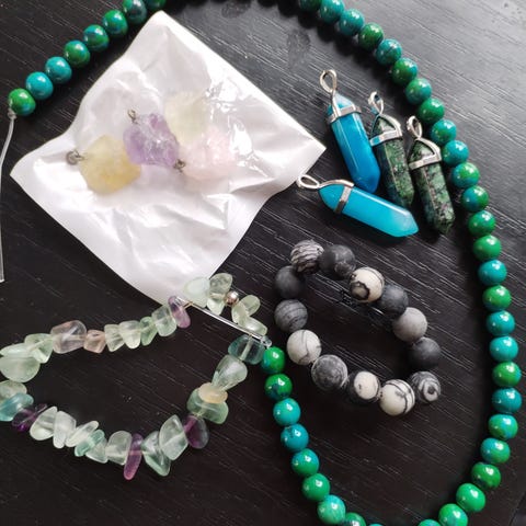 Kaksi hiottua kivikorua hopea(925)pohjalla. Lisäksi aurinko ja alppitähti (Edelweiss) kaulakorua. Lisäksi kuvan mukaisia aihiota ja välineitä korujen valmistukseen. Suurentamalla kuvia näet tarkemmin, mitä on myynnissä. Ei toridiiliä, mutta voin lähettää kirjeessä. Hinta koko paketille.
