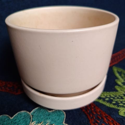 Vanha ruukku, tavallista suurempi koko, korkeus 16 cm, halkaisija 19 cm. Leimat löytyy, hyvä kunto, aavistus krakeloitumaa ruukun sisäpuolella, mutten saanut kuvaan.