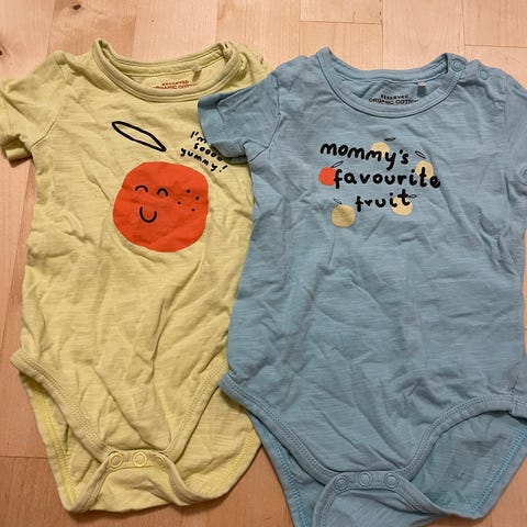 Kaksi puuvillaista lyhythihaista bodya koossa 68, merkki CoolClub. Erittäin hyväkuntoiset
