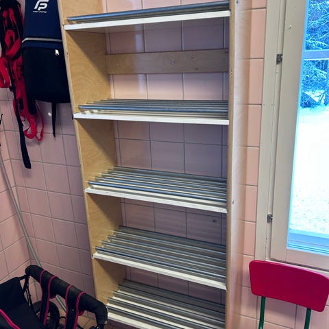 Käytetty kenkähyllynä kapeassa eteisessä (viimeinen kuva)