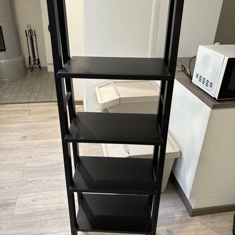 Hyllyyn kuuluva kangasosa (viimeinen ”hylly”) löytyy ehkä jos tarvitsee (harmaa kangas ja musta puuosa).