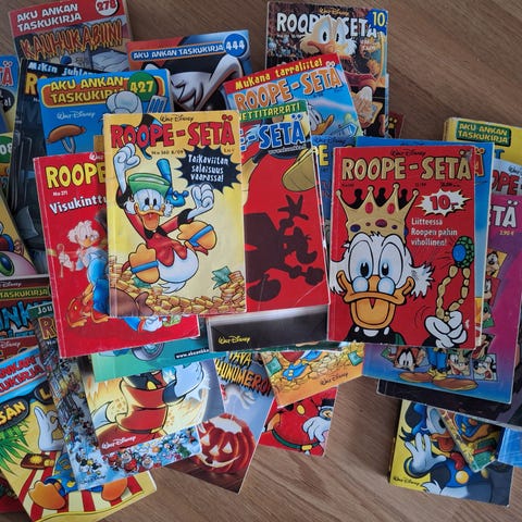 Hakusanat: Aku Ankan taskukirja, Roope-setä taskukirja, Roope setä taskukirja, Roope sedän taskukirja, Roope-sedän taskukirja, Roope Ankan taskukirja, akkari, taskari, Aku Ankka