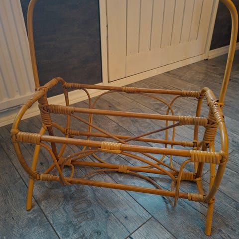 Kuvan mukainen retro lehtiteline rottinkia ja metallia ruusukuvioilla.