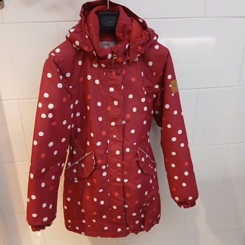 Myydään reimatec talvitakki kokoa 146. Siistissä kunnossa. Selässä kiva kuva.