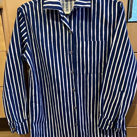 Marimekko kauluspaita , koko 32. Paita on valmistettu puuvilla/ pellavasta ja siinä on sininen unikkokuviointi. Ostettu kesällä 2025 ja muutama kerta käytetty. Oversize malli vastaa kokoa S.