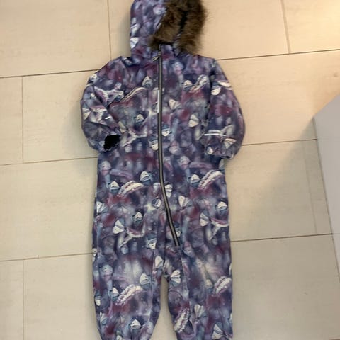 Name it toppahaalari koko 104cm. Polvissa ja takamuksessa kuvanmukaiset kankaan kulumat, ei kuitenkaan reikiä. Jalkalenksut ja yksi jalkalenksuja kiinnittävä nappi puuttuu. Vetoketju toimii. Kahdella lapsella palvellut.