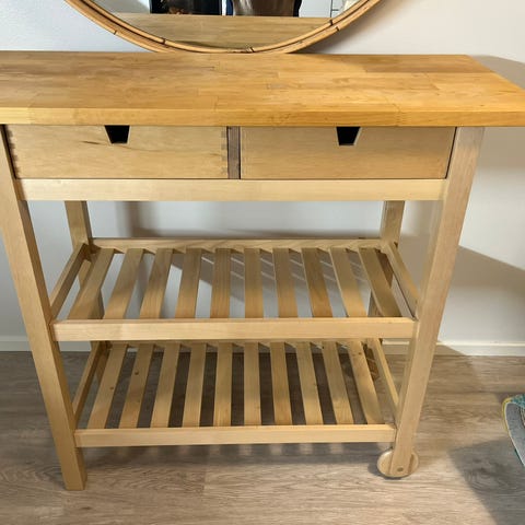 Ikea Hol apupöytä akasia. Toiminut mummolassa lelulaatikkona. Nykyinen lelumäärä ei mahdu laatikkoon, joten jäänyt tarpeettomaksi.